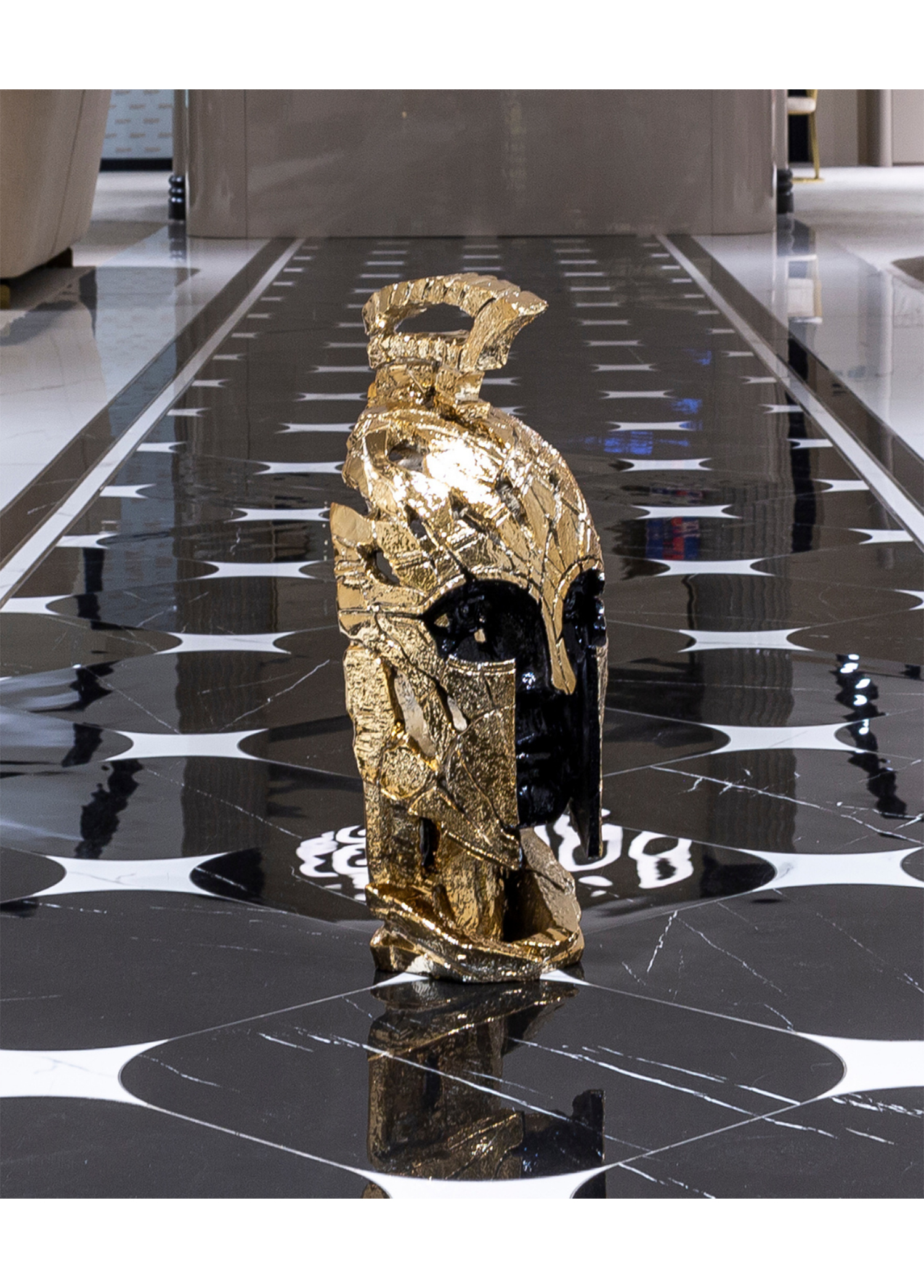 - Gold Savaşçı Miğfer Biblo, tarih ve sanatı buluşturan etkileyici bir dekoratif objedir.